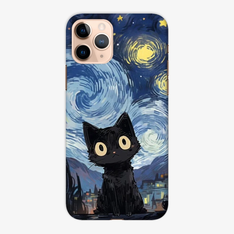 - Чохол з чорного матового силікону з принтом "Кіт Да Вінчи" для Apple iPhone 11 Pro Max.